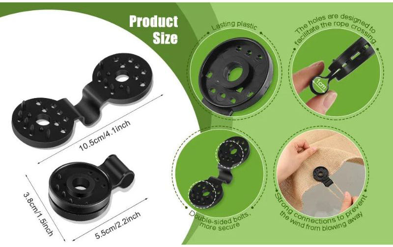 HEAVY-DUTY AND HIGH QUALITY MATERIAL – Our shade cloth grommets are made from 100% virgin PE material, UV Treated. High impact plastic components provide long life, which can fix the sunshade nicely to prevent being blown away by the wind, and effectively block the ultraviolet rays and birds from passing through the sunshade.